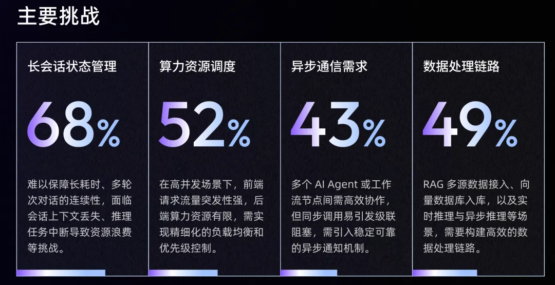 《AI 原生应用架构白皮书》侧重于技术层面的挑战进行调研:长回话状态管理 > 算力资源调度 > 数据梳理链路 > 异步通信需求,和质量、延迟、成本有所呼应。