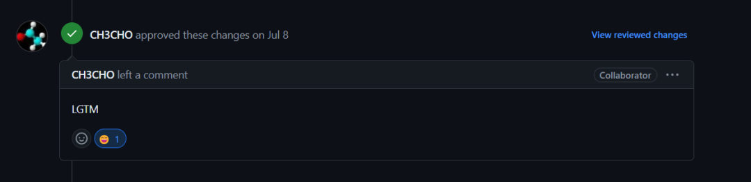 2024 年 7 月 8 日,我进行了最后一次测试。我写了十分详细的测试文档,然后提交。直到我看到负责人给我评论了”LGTM(Looks Good To Me)“,我高兴极了。很快他 Merge 了我的PR。就这样我得到了第一个属于自己的 Merged PR。