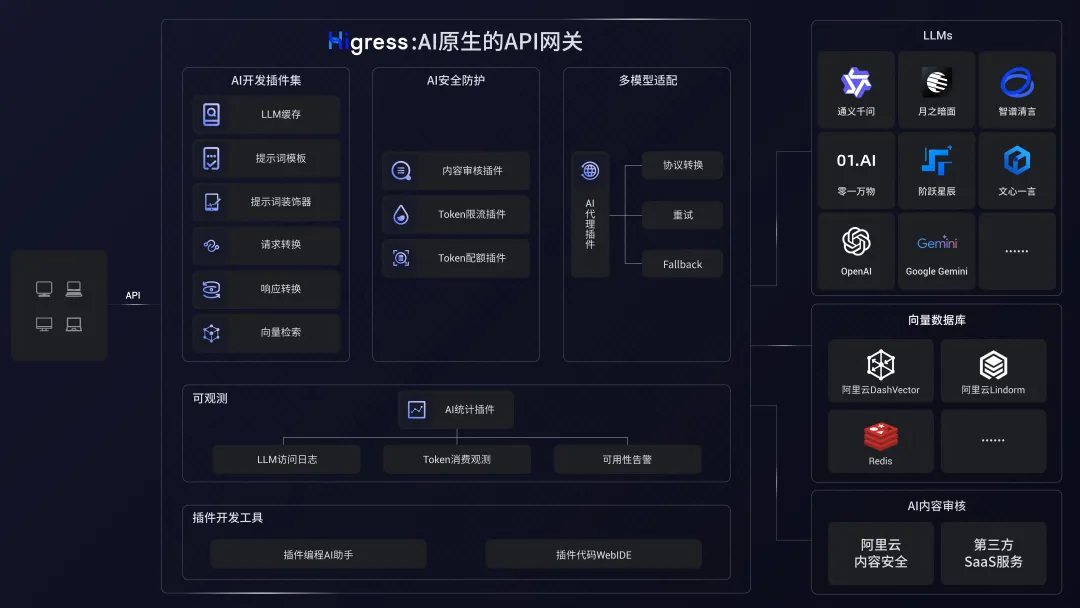 今天,Higress 既是通义千问等阿里云核心 AI 业务的 API 网关,又是云上多家 AGI 厂商的的 API 网关,我们也很乐于分享在接入这些场景过程中积累的心得体会,并将相关 AI 能力全面开源:
