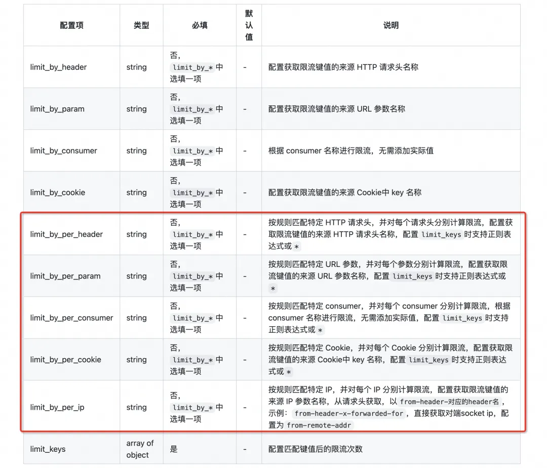 | 后端保护式限流 | 保护后端,防异常流量和恶意攻击 | API:某个 API 限制 100 QPS IP:每个 IP 访问速率不可超过 10 QPS Cookie:每个 Cookie 访问速率不可超过 10 QPS |