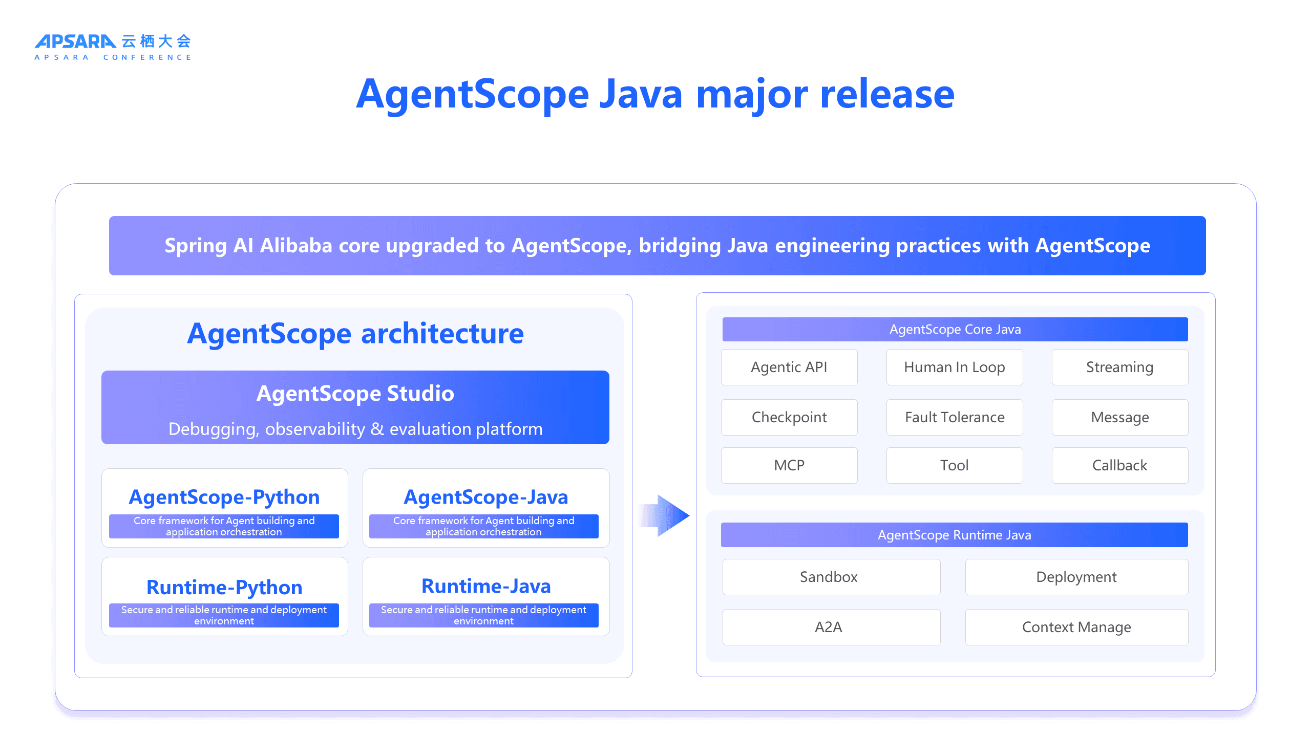 Spring AI Alibaba is an open-source project built on Spring AI, representing the best practices in Java AI application development for Alibaba Cloud's Tongyi series of models and services. It offers high-level AI API abstraction and cloud-native infrastructure integration solutions, helping developers quickly build AI applications. Currently, Spring AI Alibaba is upgrading its underlying technology to AgentScope, positioning itself as part of the AgentScope ecosystem, focusing on effectively connecting Spring and AgentScope.